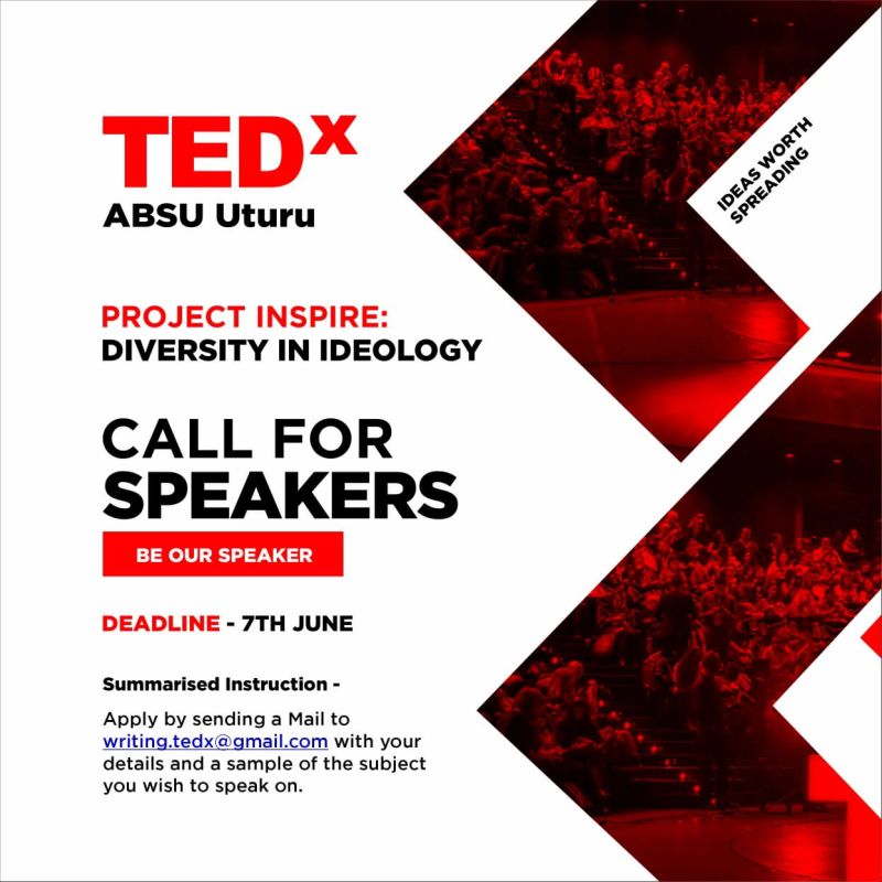 Call for Speakers: TEDx ABSU Uturu (deadline June 07, 2024)