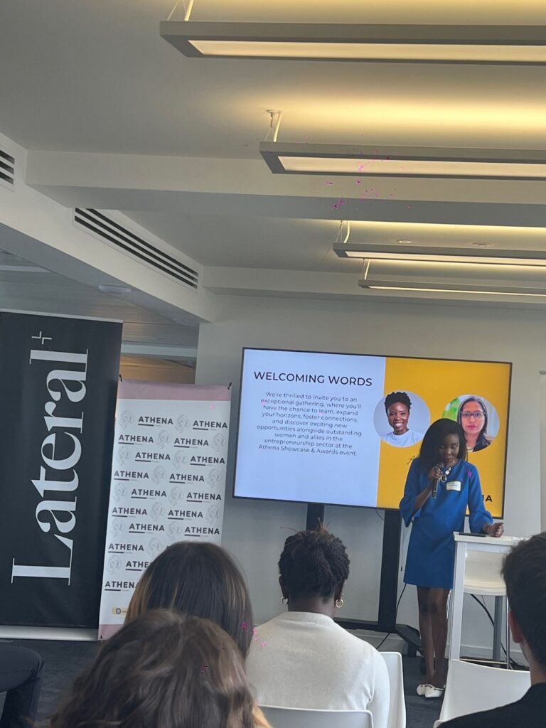 Before the Awards: Deborah Somoye presenting the Tsiume stall and sharing the company’s vision at the AthenaFundX HerMarket showcase