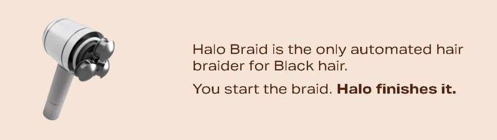 Describing herself as an entrepreneur and inventor passionate about the intersection of novel technologies and culture, Yinka’s Halo Braid is the only automated hair braider on the market for Black hair. The Halo Braid not only cuts down braiding time from hours to minutes, but also produces neatly crafted, beautiful, long-lasting, and perfectly even braids.
