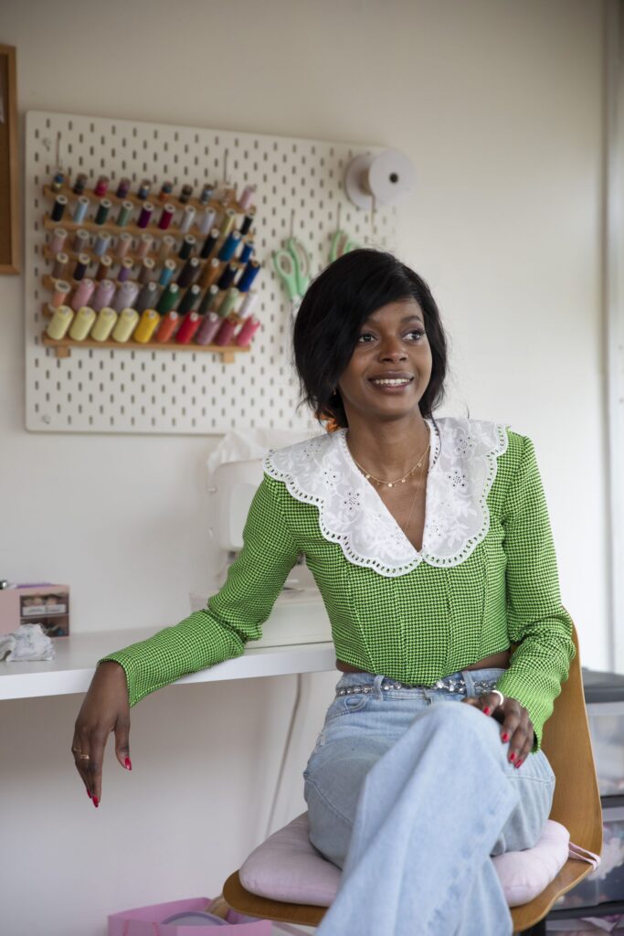 Originally from Nigeria, Maria Igwebuike moved with her family to the UK as an asylum seeker when she was 11 years old, but was fortunate to discover her passion for fashion and design from an early age, dedicating most of her free time to sketching, hand-sewing, and upcycling second-hand clothing.
