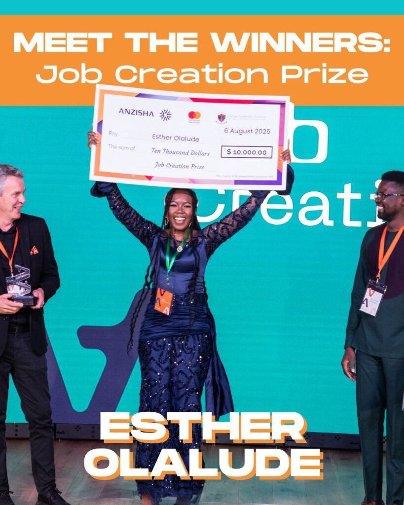 ✅ Job Creation: Esther Oluwabunmi Olalude (Nigeria) – Founder of Venille, turning banana stem waste into biodegradable sanitary pads, creating 20+ jobs and fighting period poverty.